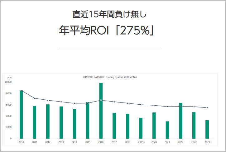 このディレクションアロー売買システムは、なんと10年以上の長期間にわたって安定した結果を出し続けています。