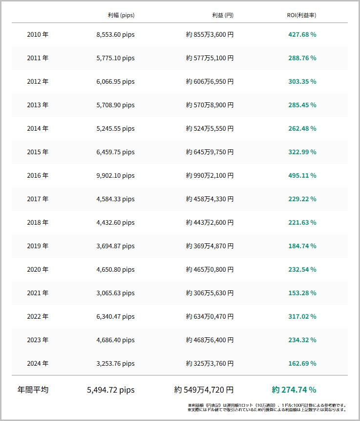 ④ 年間平均5,000pips超えの実績が示す技術の結晶